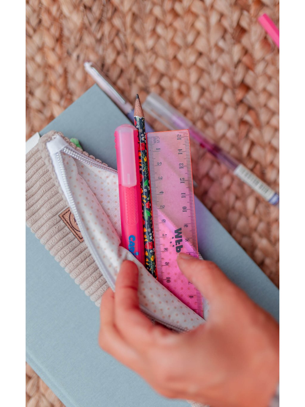 Praktický mini penál z nejkvalitnějšího manšestru na trhu, který díky pružné gumičce snadno nasadíte na knihu, sešit nebo diář. Ihned se stane vašim oblíbeným parťákem. Tužky se už nikdy nebudou válet pod stolem a nebudete je muset neustále poházené hledat v batohu či kabelce. Ideální na cesty, do školy i do práce.