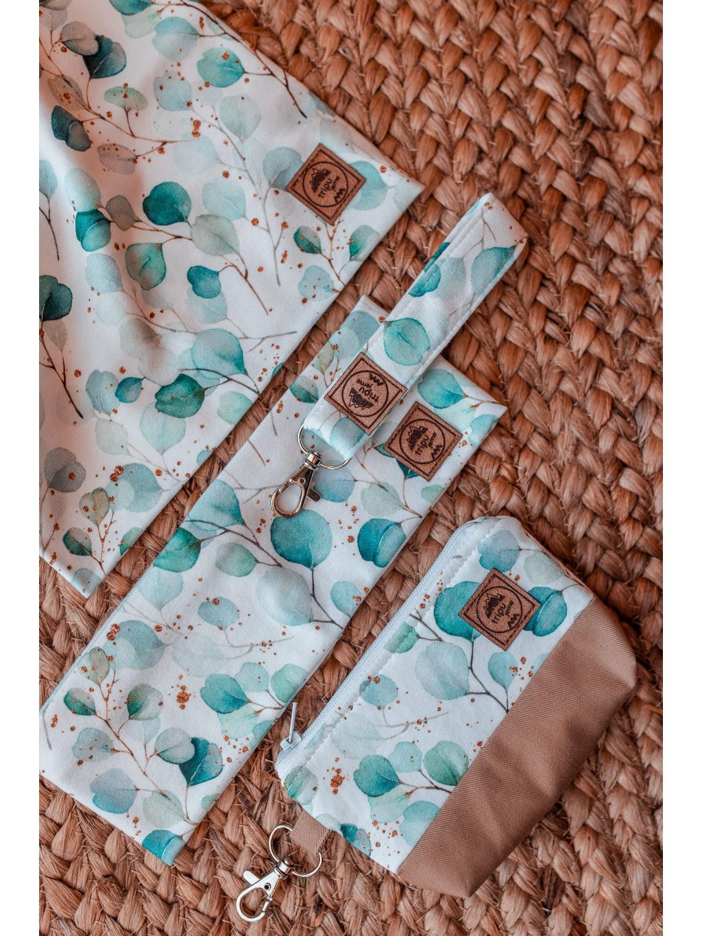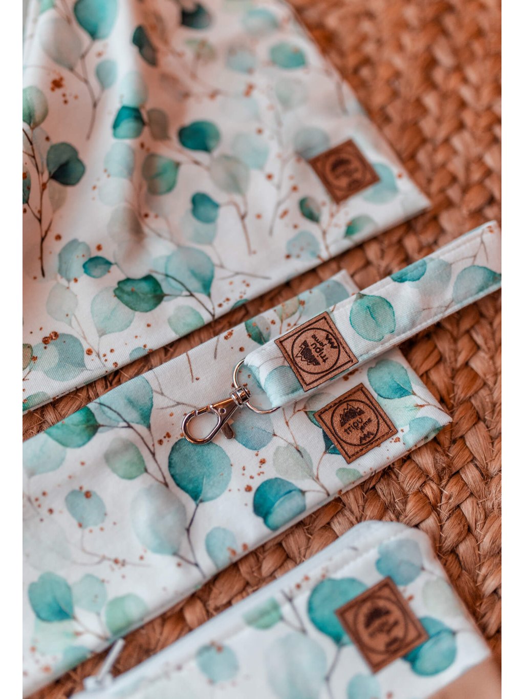 Čelenka + nákrčník + taštička + klíčenka (Eukalyptus na bílé)