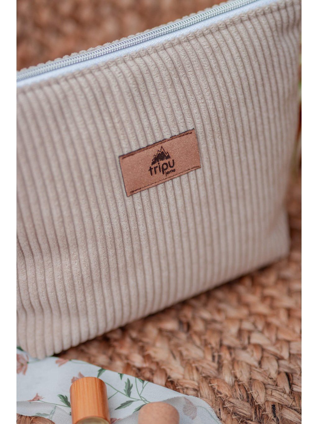 Manšestrová kosmetická taštička - světlá béžová