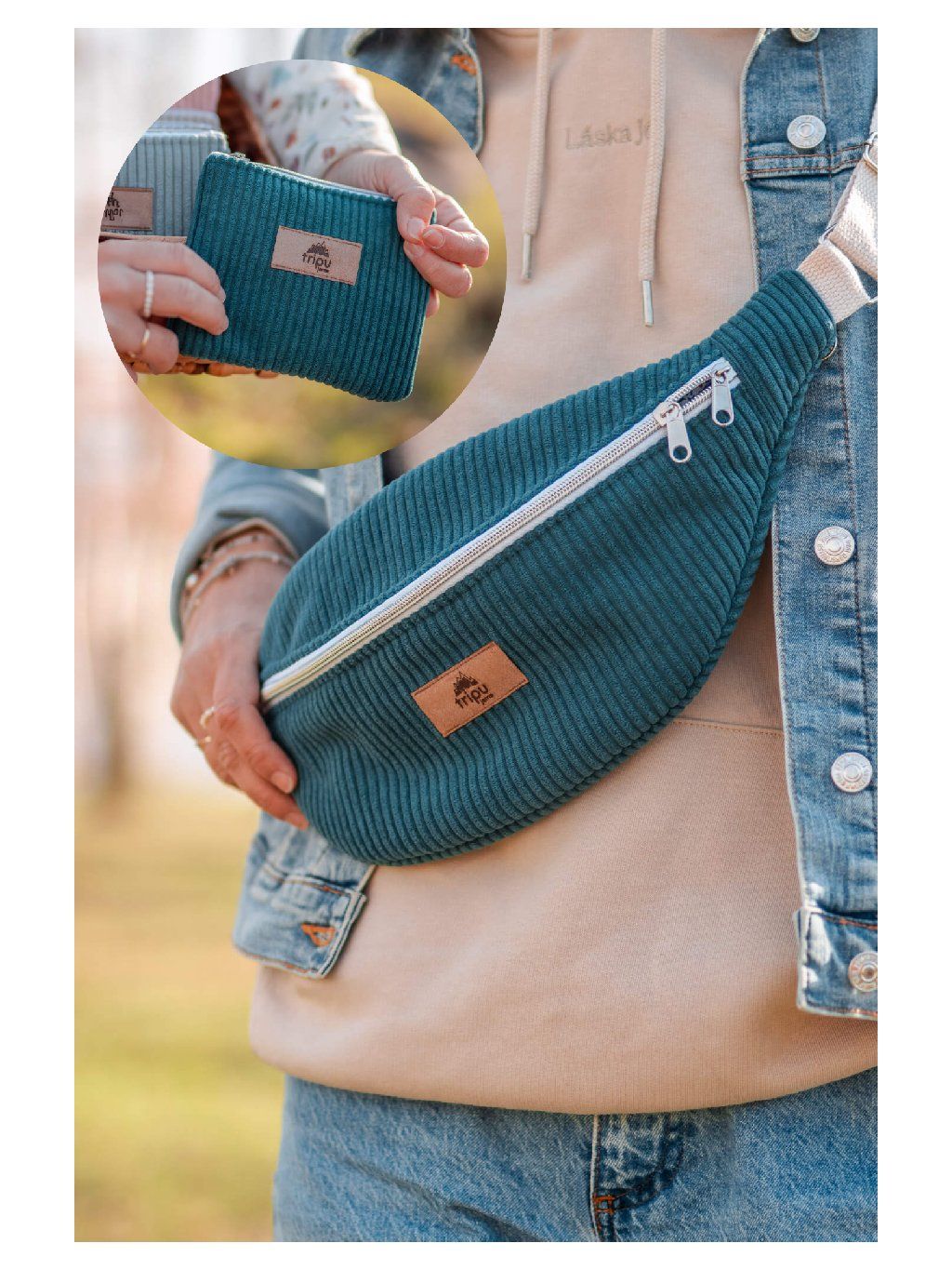 Manšestrová ledvinka + peněženka ZDARMA - petrolejová