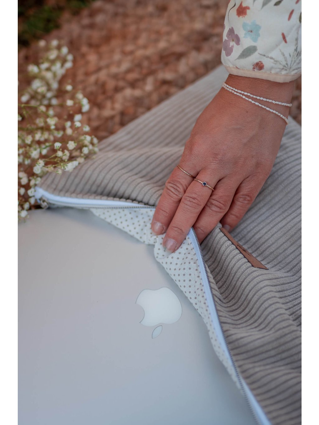 Vnitřek manšestrového obaluVnitřní strana obalu dokonale ladí s barvou manšestru. Vždy volíme drobný vzor na měkoučké a jemné látce, abyste kdykoliv, když do obalu pro notebook sáhnete, měli pocit, že jste jako v bavlnce. |